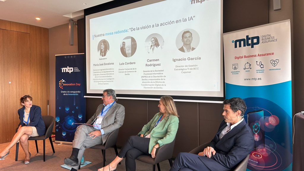La Inteligencia Artificial (IA) como motor de innovación ha sido protagonista en la tercera edición del evento Innovation Day que ha organizado MTP en la ciudad de Sevilla. Con muy variadas ponencias, se ha analizado la contribución y el impacto de la IA en actividades y negocios de muy diferentes ámbitos, desde el propio de MTP y Ciberso como es el aseguramiento de la calidad de software y la ciberseguridad, como en administraciones públicas, gestión de un club deportivo o empresas del sector bancario.